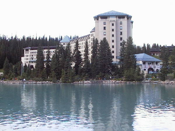 左は「シャトーレイクルイーズホテル」を湖側から見た姿です。